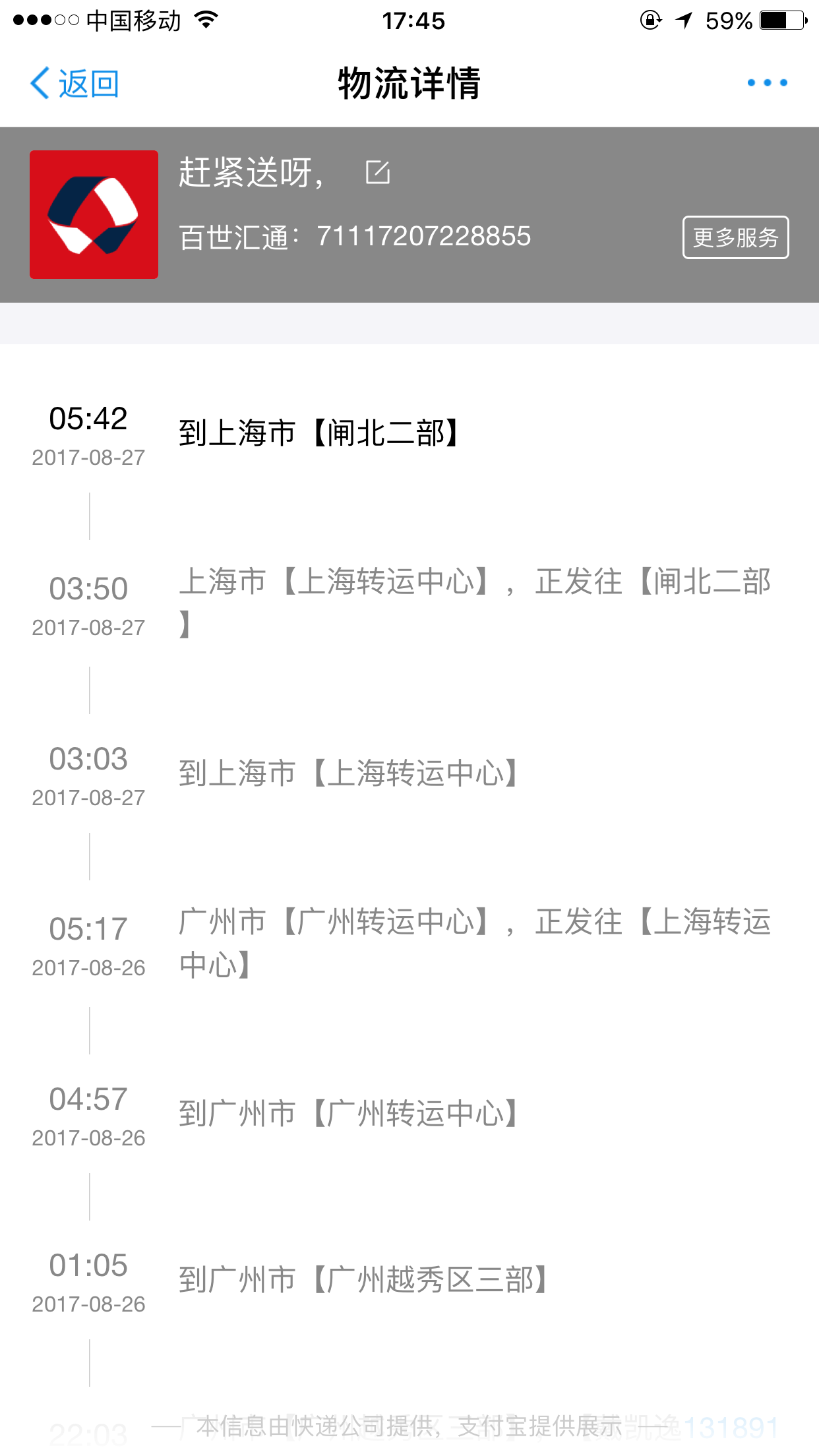 本來8月25日顯示派送的貨物一天沒到我手,現(xiàn)在顯示成上店自提,也不告訴我地址。打電話不接,什么情況啊 你們撫順的百事快遞 黃了啊