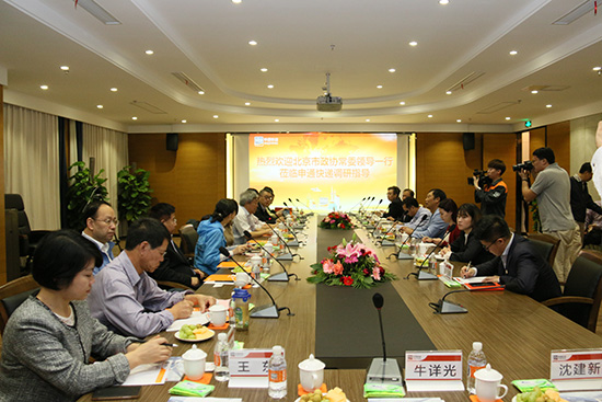 10月20日,北京市政協(xié)常委、城建環(huán)保委員會主任程靜帶領市政協(xié)調研考察團一行十余人蒞臨申通快遞總部調研指導。申通快遞董事長陳德軍、副總裁邵知路、總裁助理李永順等公司高管熱情接待了調研團一行。
