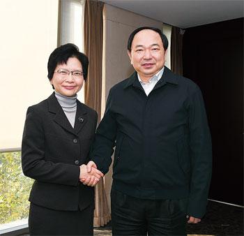李國華與丁葉燕薇親切握手。□本報(bào)記者 王勇 攝
